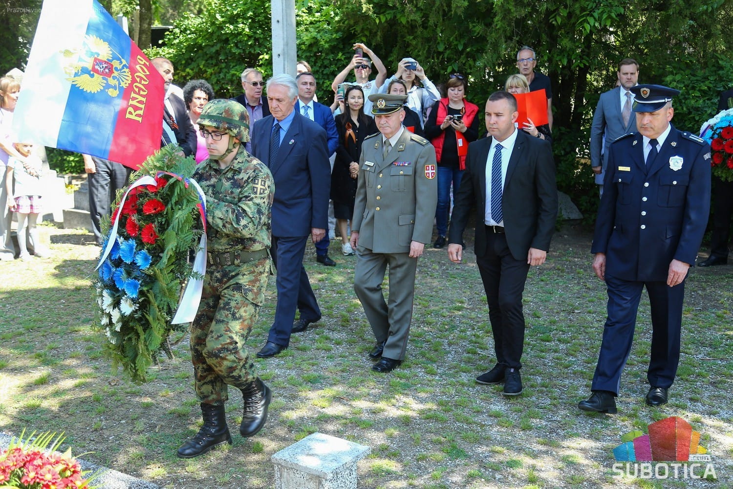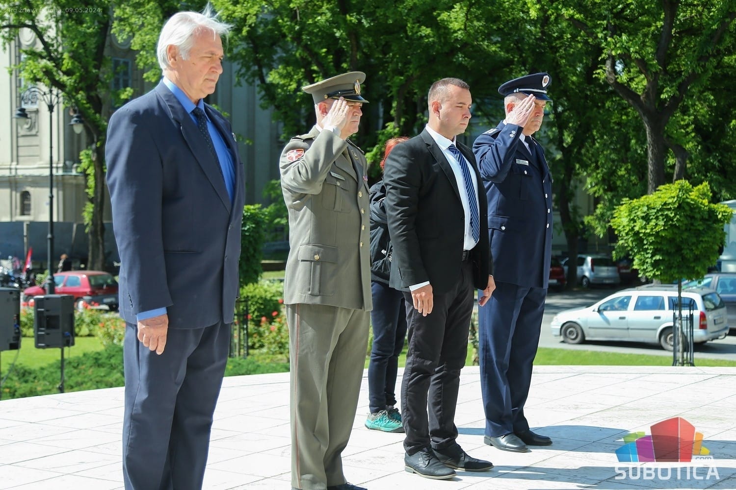 У име грађана Суботице, локалне самоуправе и СУБНОР-а града Суботице венац на Споменик жртвама фашизма положила је делегација коју је предводио градоначелник Стеван Бакић, у име Владе Републике Србије и Севернобачког управног округа делегација коју је предводио Бојан Шоралов, начелник Округа, а у име амбасаде Руске Федерације у Београду делегација коју је предводио Алексеј Иваненко, први секретар Амбасаде.